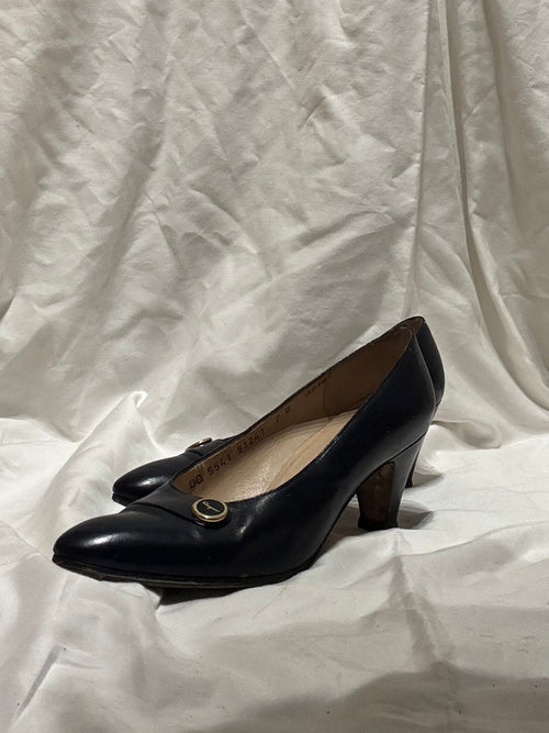 Salvatore Ferragamo Navy Leather Gancini Pumps – Vintage Italy – Size 7B